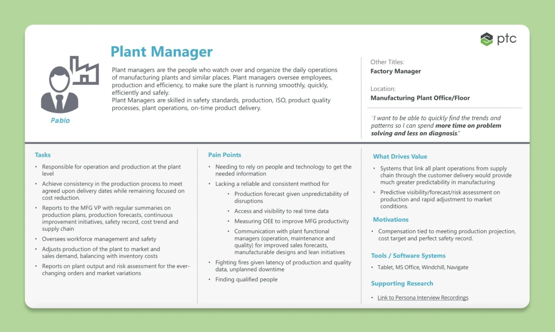 I researched internal perspectives and industry best practices to re-design PTC’s personas to promote diversity and inclusion in our design process.