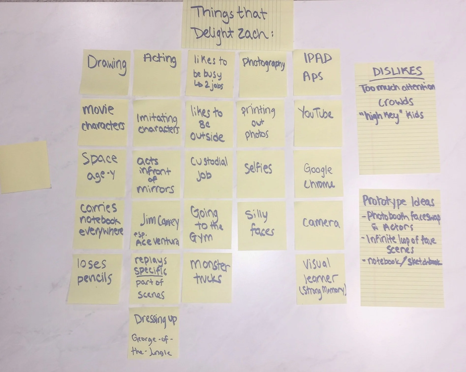 In Design Impact class, my teammates and I followed the design thinking process to “design a delightful experience” for Z.D., a student with Autism. We were given two one-hour visits to meet with Z.D. and test out our prototypes.