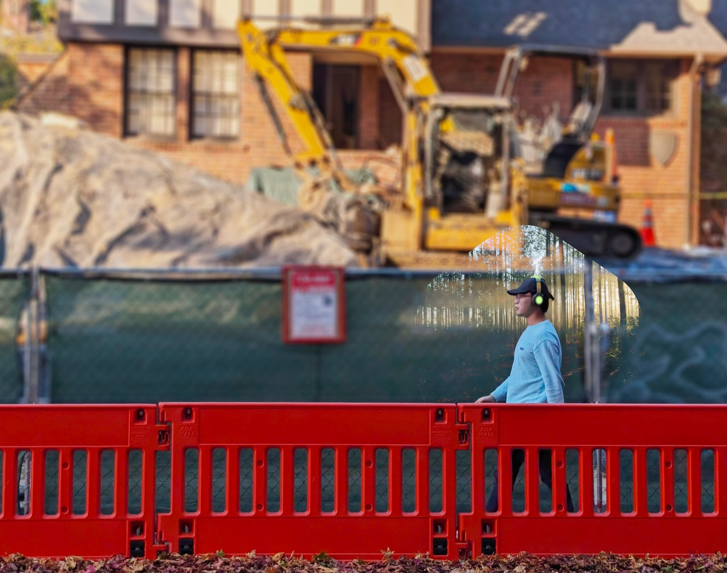 Walking past construction, you could opt to replace machinery sounds with nature sounds