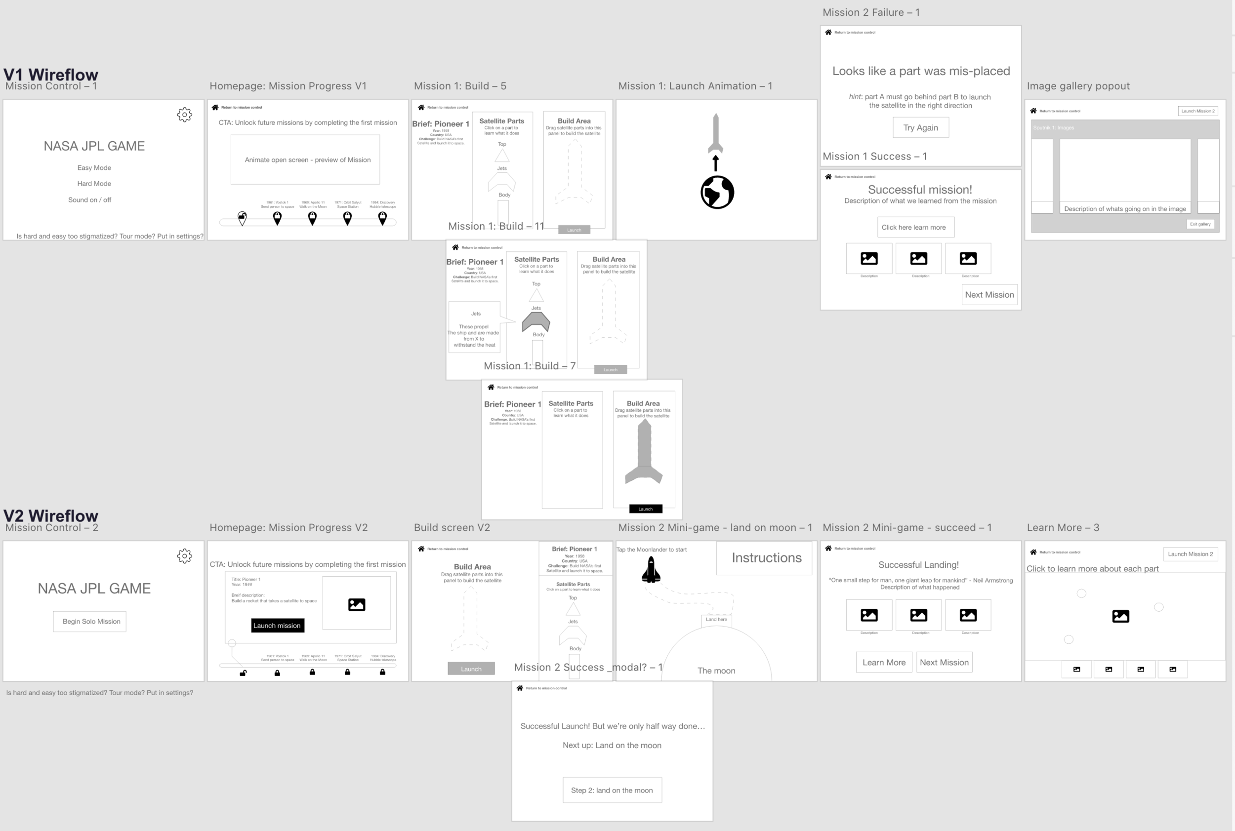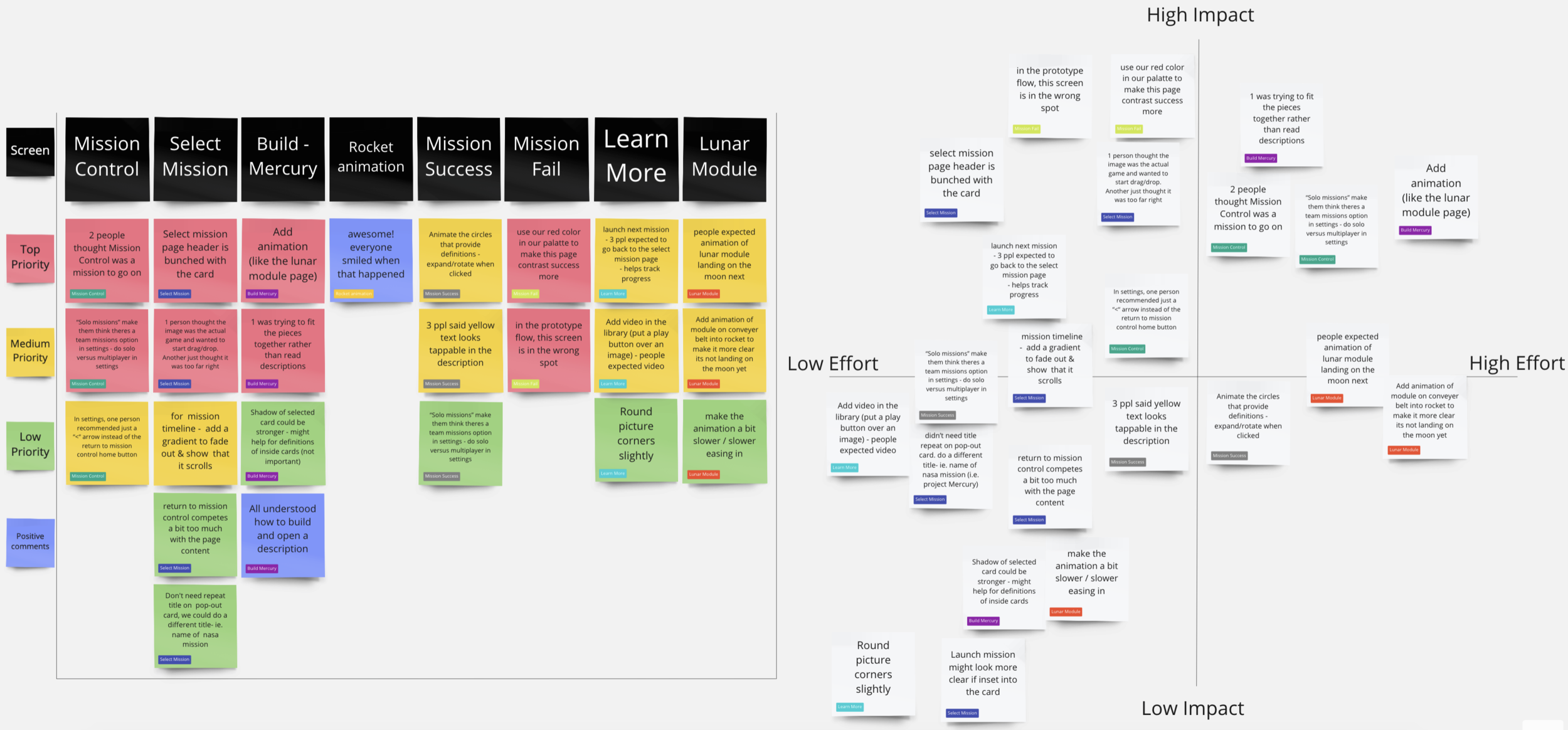 Our “home” button read “Return to Mission Control” but zero participants understood what mission control was. Laura changed it to a hamburger menu.