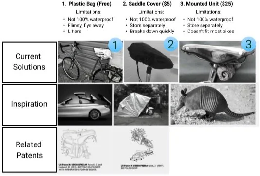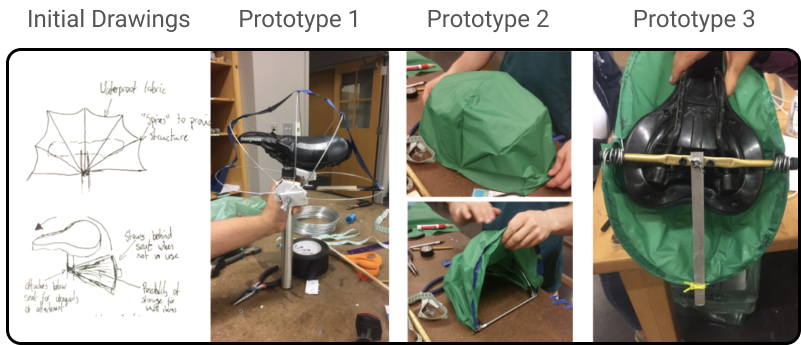 To empathize with the wet seat problem, we all documented current solutions found on campus. A teammate and I tested each solution and found all to be inadequate in keeping a bike seat dry.