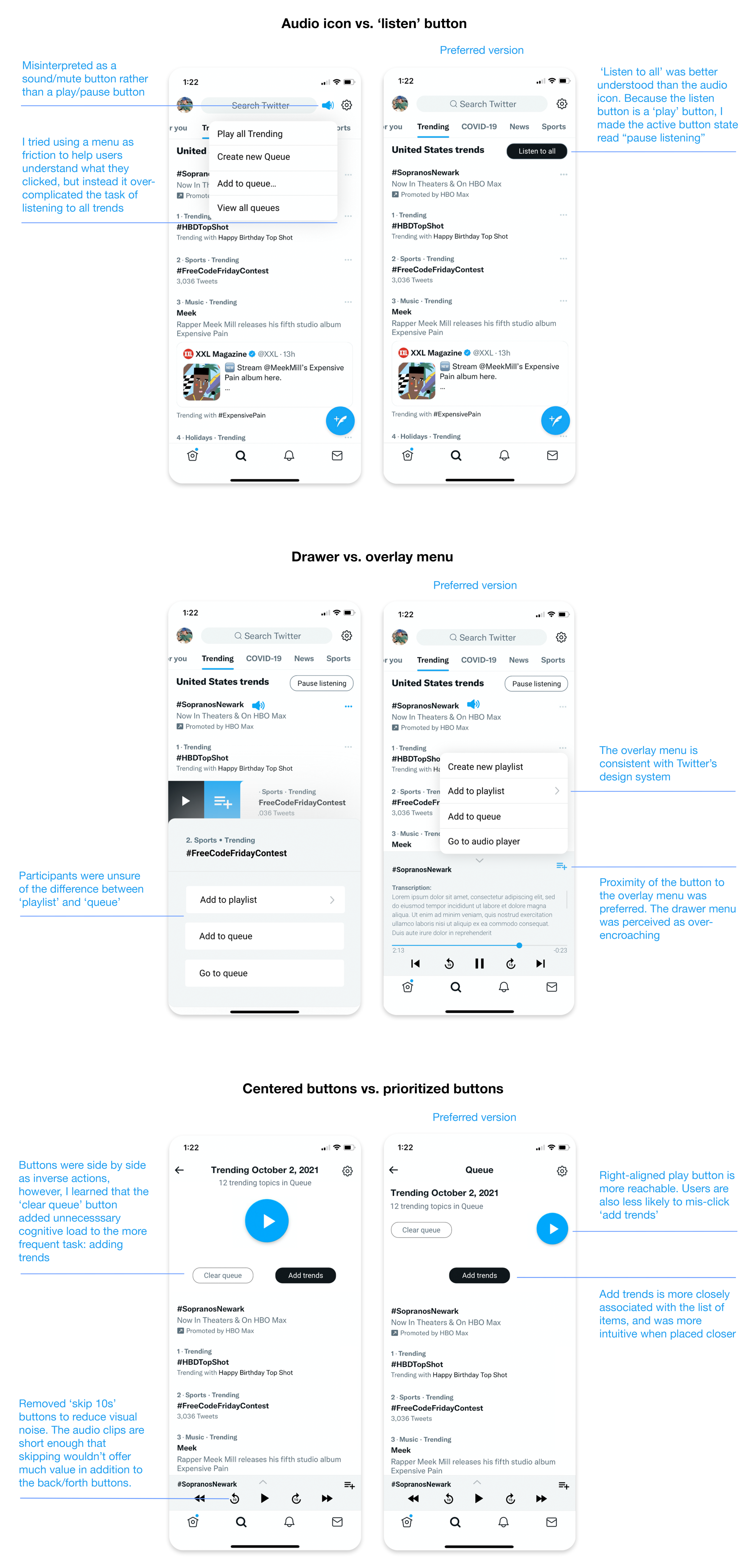 The purpose of this case study is to propose a way for Twitter users to keep up to date without having to direct constant physical & visual attention to a phone— a playlist feature appeared to be a viable solution.