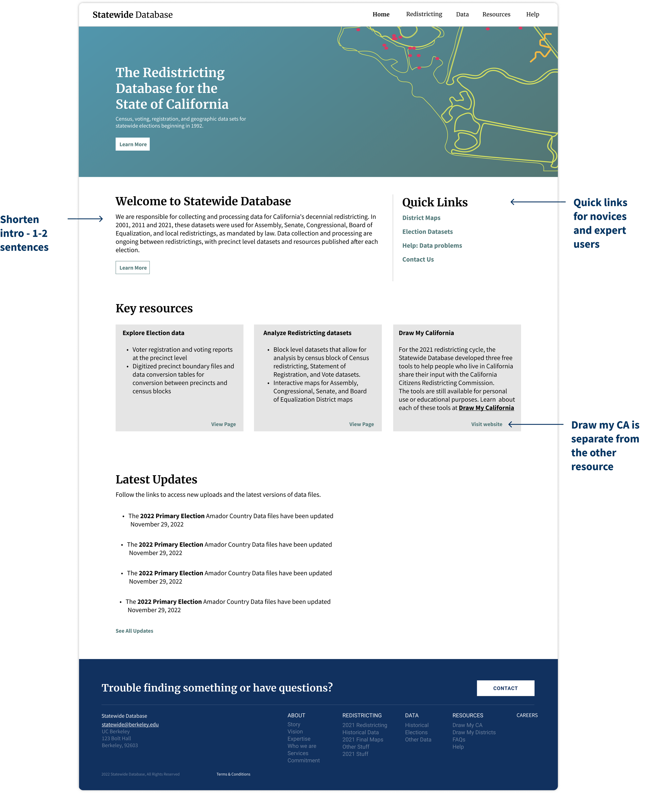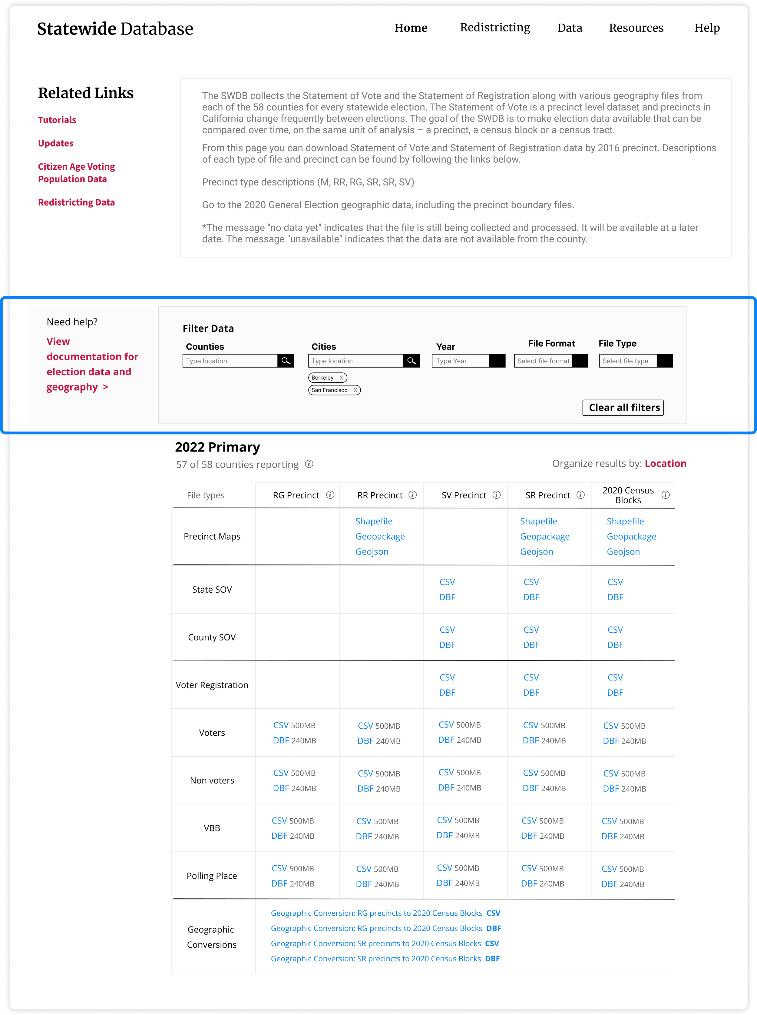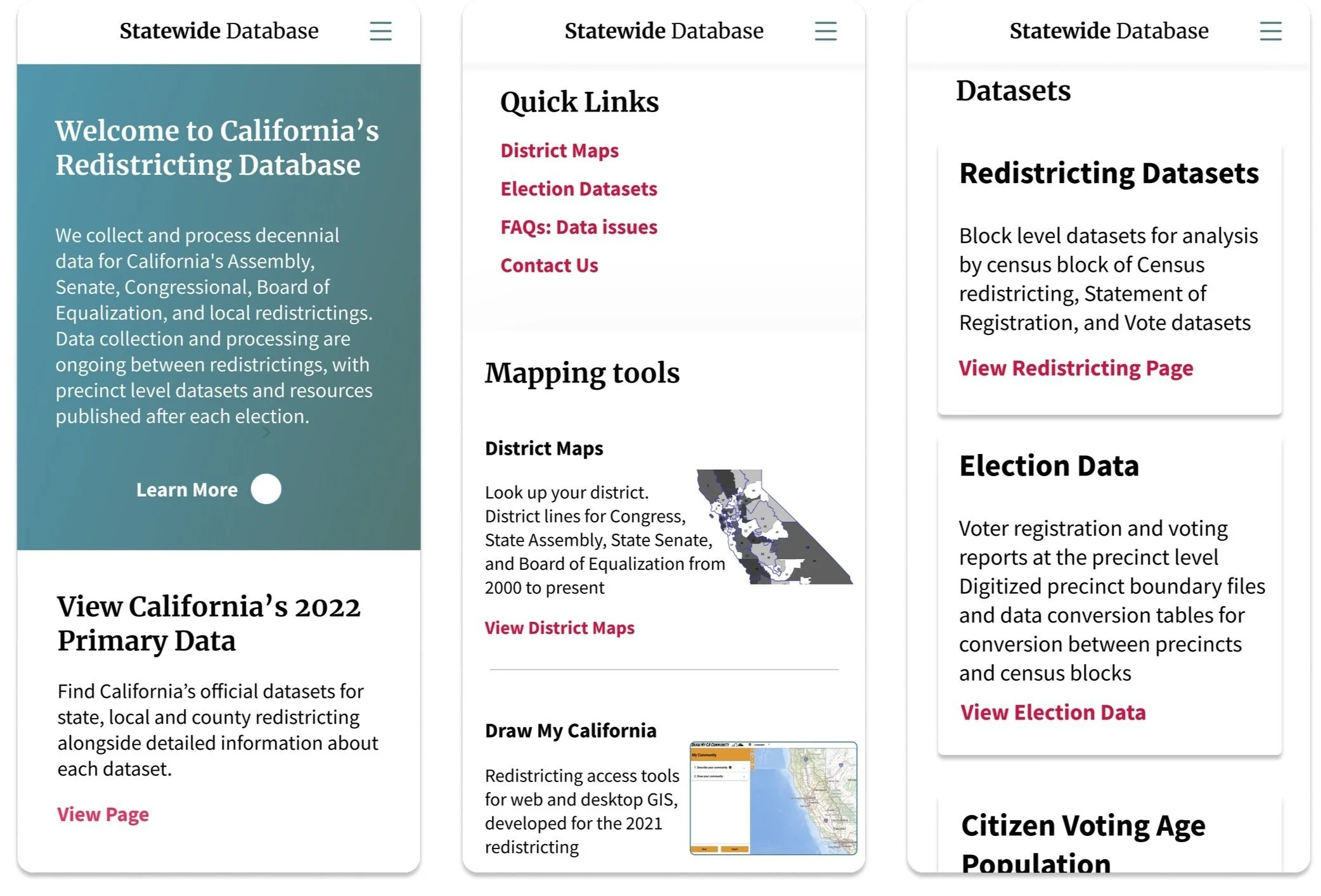 Re-designed California’s Statewide Database website: a platform dedicated to providing free, nonpartisan census data to all.