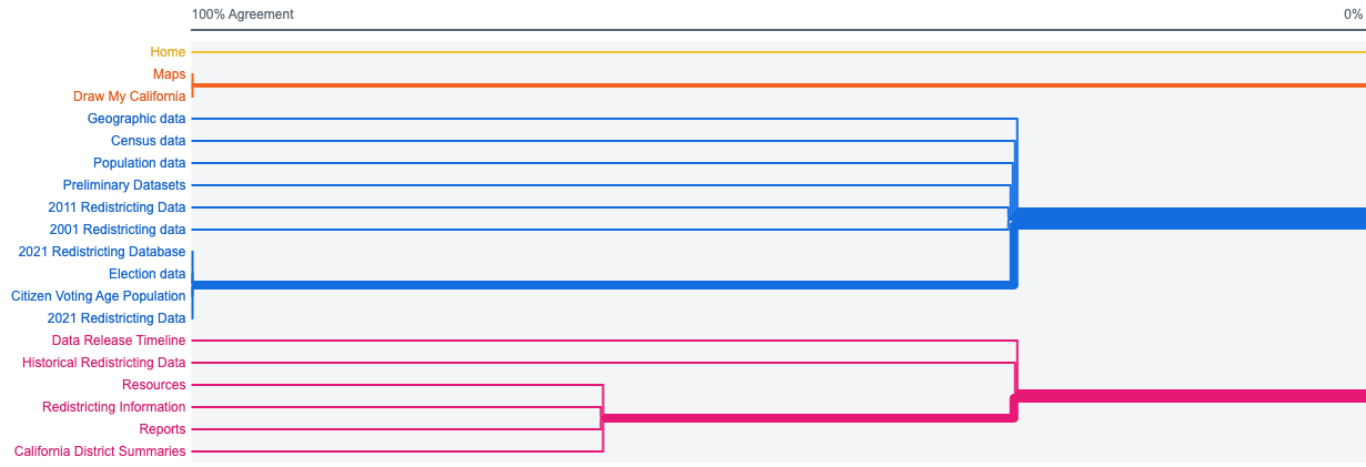 Four groups emerged from the card sort: Data, resources/help, maps, home