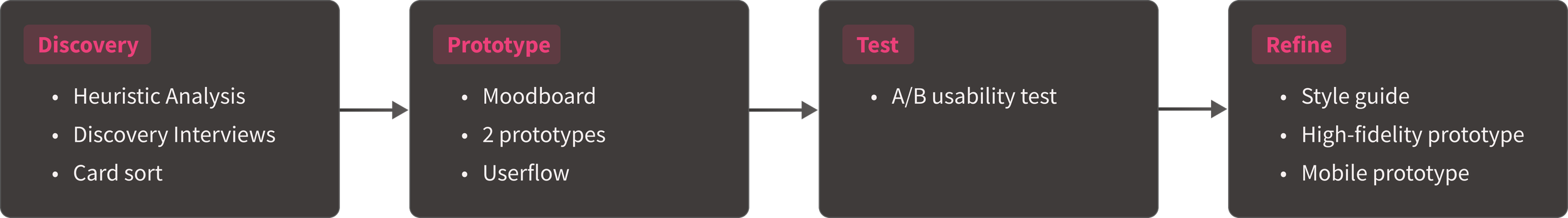 Methods: Heuristic analysis, card sort, wireframing, user flow, style guide
