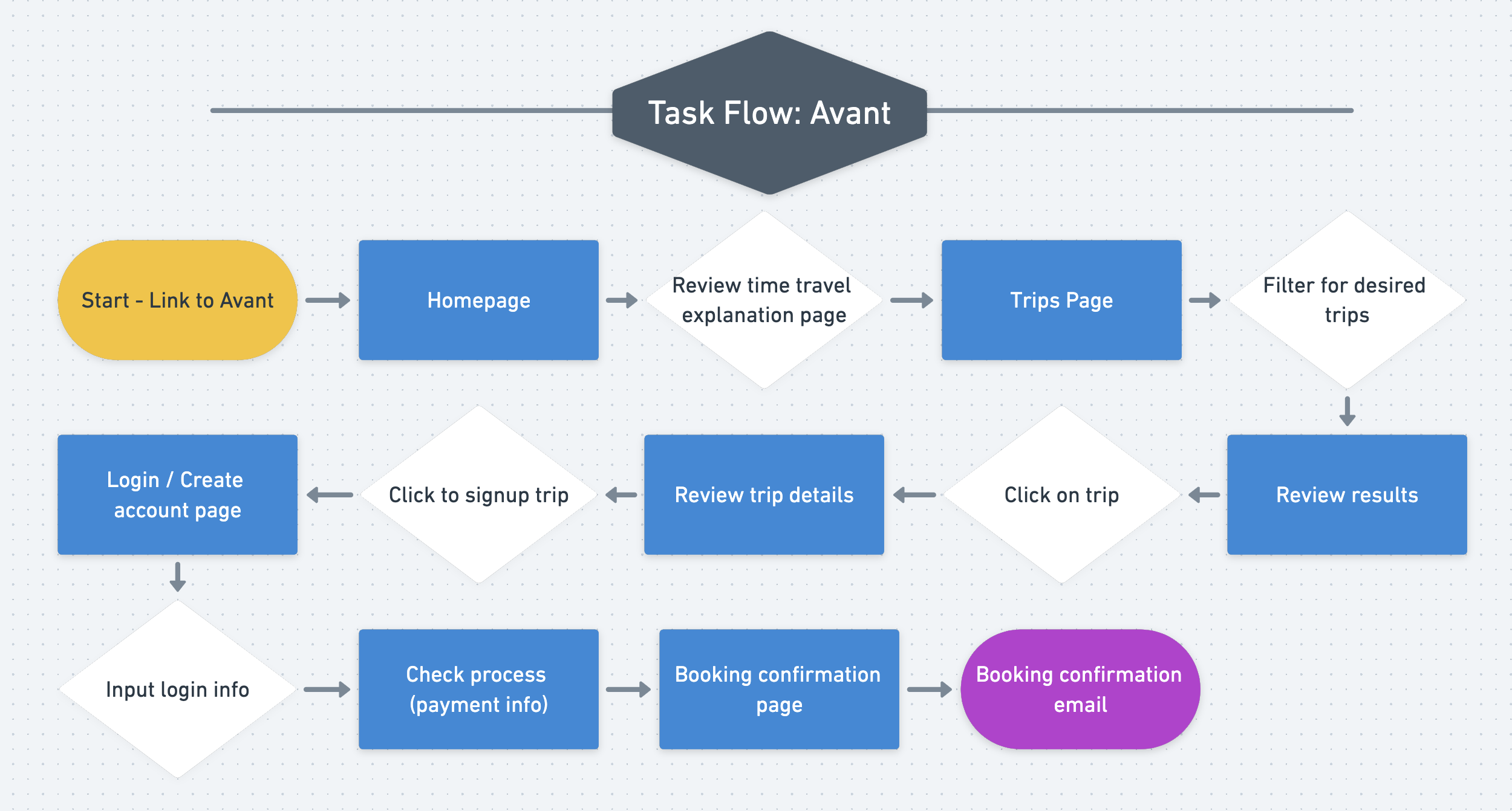 The goal of the research was to learn the strengths and weaknesses of Avant’s booking process for new users. More specifically— how customers navigate the site, and which features are used/ignored in the trip booking process.